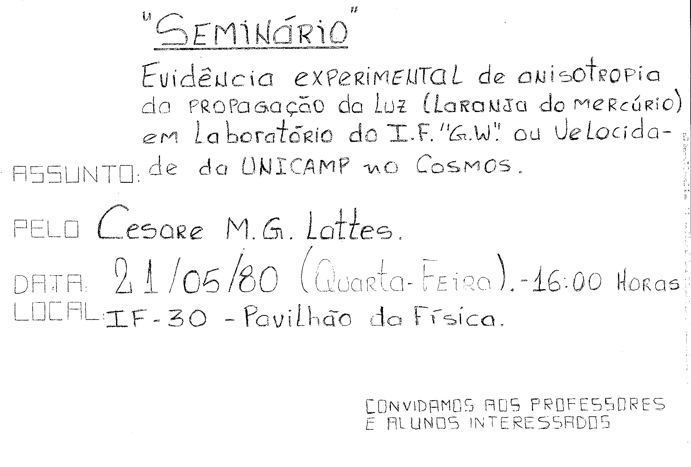 - "IFGW Memória, vídeo 1: Prof. André Assis (DRCC)". Entrevista disponibilizada em 19/11/2025 no canal IFGW Play do Instituto de Física Gleb Wataghin da Unicamp na qual relato uma palestra ministrada pelo Prof. César Lattes (1924-2005) em 1980 na qual ele apresentou suas experiências que iam contra as teorias da relatividade de Einstein: https://www.youtube.com/shorts/oZc8oNiWOtk. Cartaz de divulgação dessa palestra de 1980 em formatos JPG e PDF: https://www.ifi.unicamp.br/~assis/Lattes-1980.jpg e https://www.ifi.unicamp.br/~assis/Lattes-1980.pdf. Entrevista concedida por Lattes em 20/06/1999 ao jornalista Chico Pinheiro na qual Lattes, quase 20 anos depois dessa palestra, ainda sustentava que as experiências que realizou em 1980 contradiziam Einstein: https://youtu.be/1NkwEAGp4eU?t=428. Uma foto de um seminário proferido por Lattes no Instituto de Física da USP em 1980, provavelmente sobre o mesmo tema, encontra-se disponível na internet: https://memoriadafisica.ufpa.br/galeria/imagens/seminario-do-prof-cesar-lattes-no-instituto-de-fisica-da-usp-1980.